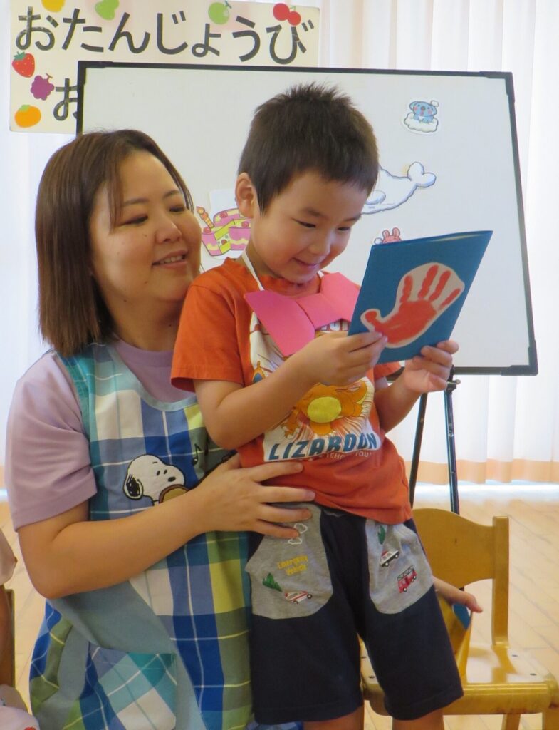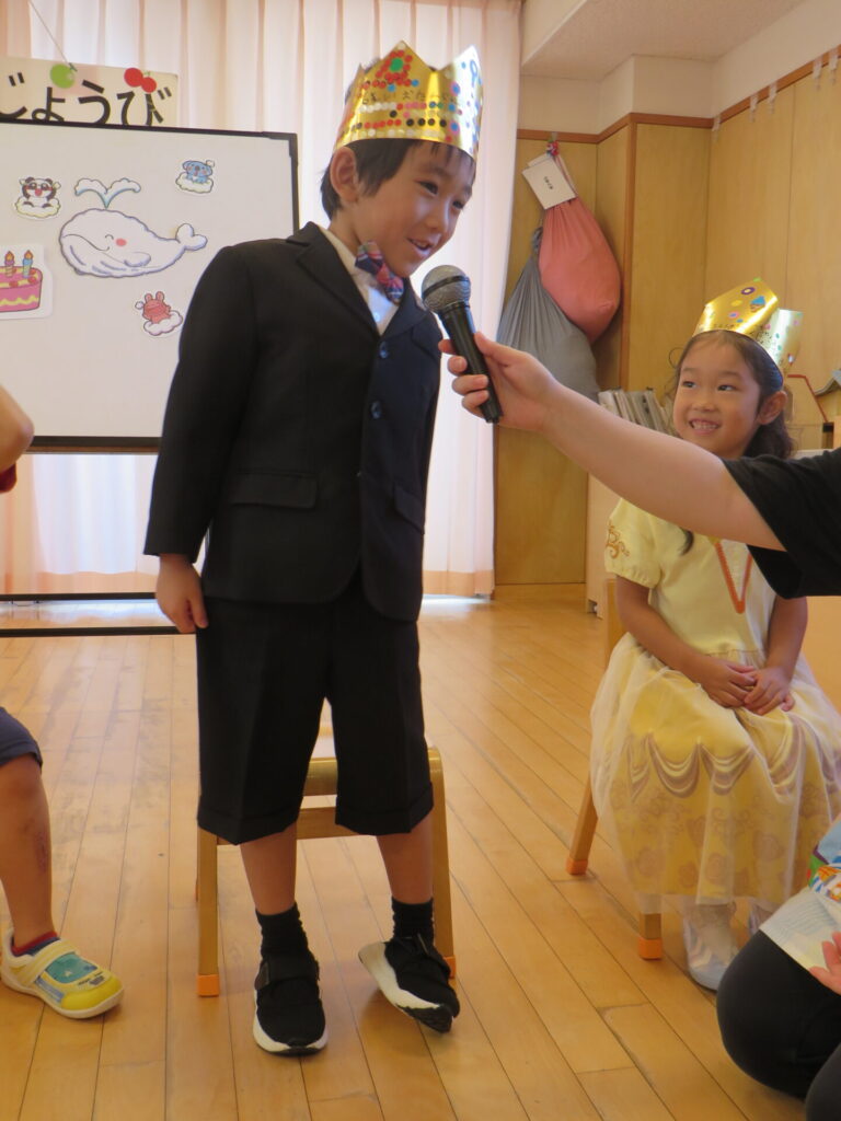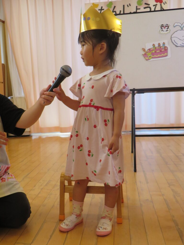 その後、誕生児のインタビュー・誕生カードをプレゼントして みんなで“ハッピーバースデー”の歌をうたいお祝いしました🎉